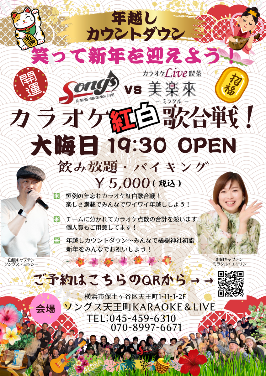 年越しカウントダウン!ソングスvs美楽來カラオケ紅白歌合戦2025・12・31(水)19:30