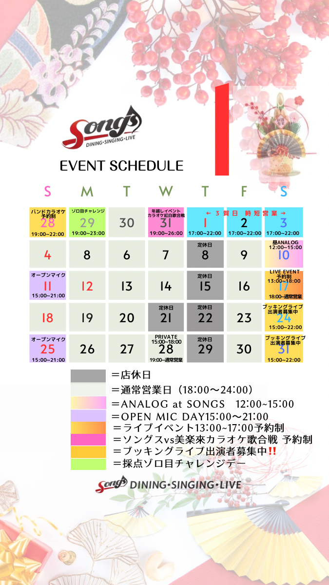 1月営業カレンダー