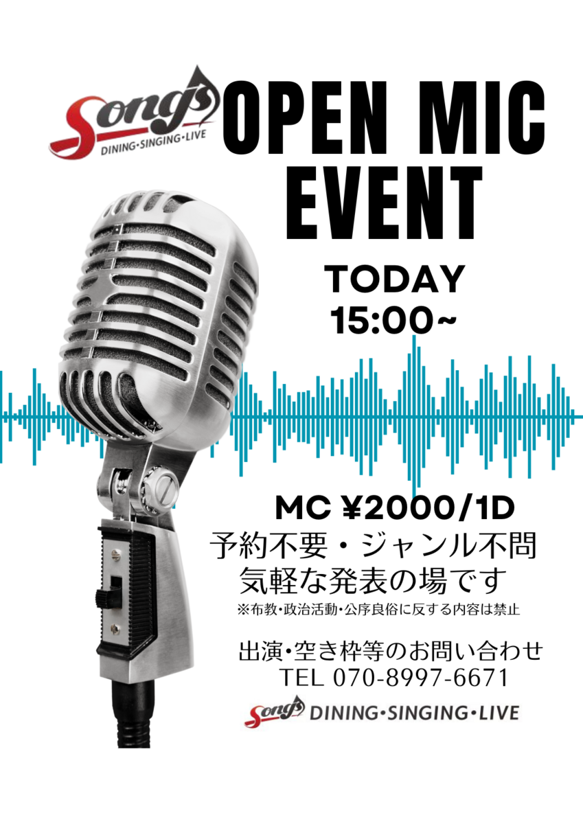 オープンマイクデー4月12日・26日 15時〜21時